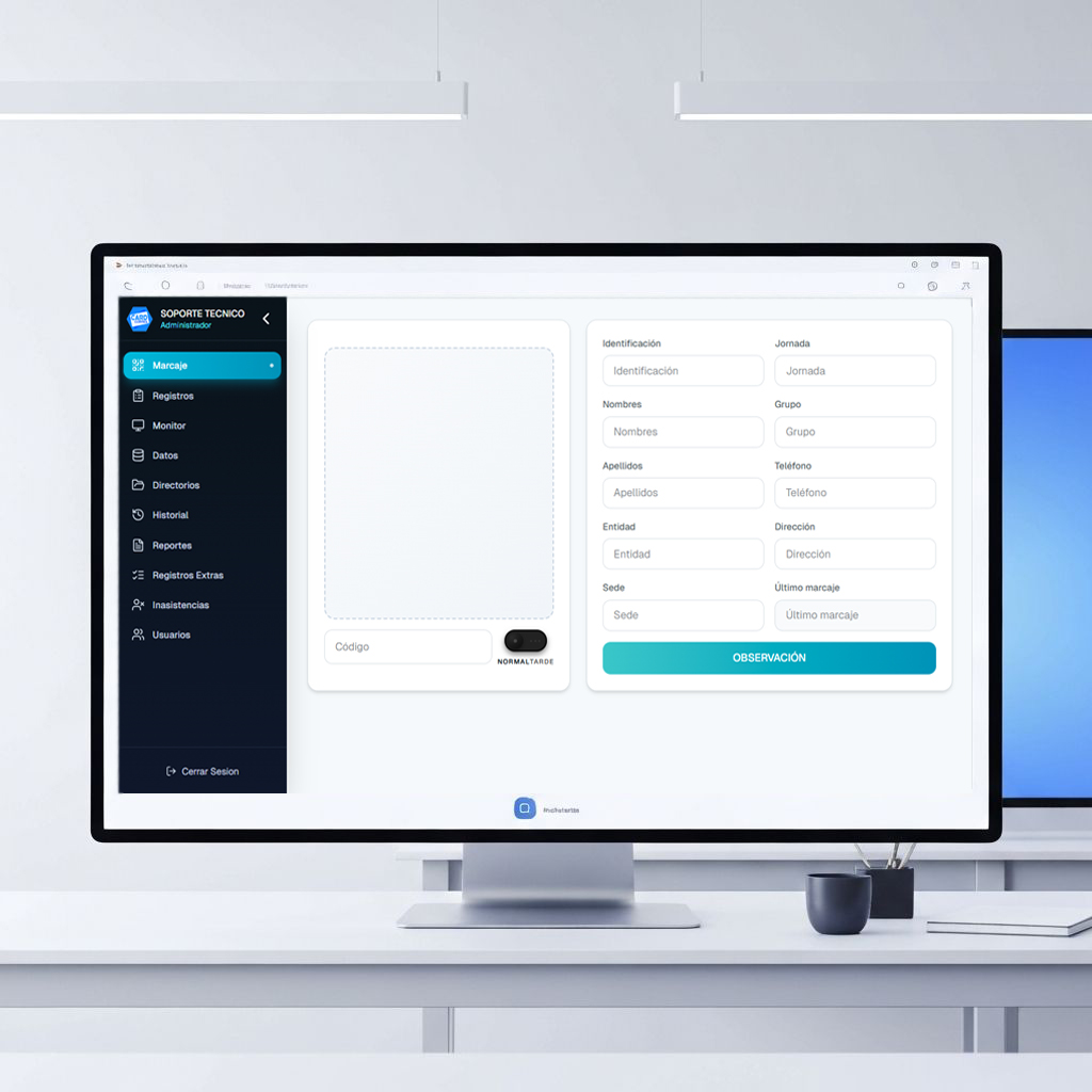 Registro automatizado y preciso de asistencia para estudiantes, empleados y personal de tu institucion. El sistema captura la hora exacta de cada lectura del carnet, generando reportes diarios, semanales y mensuales con porcentajes de asistencia por persona, departamento o sede.
